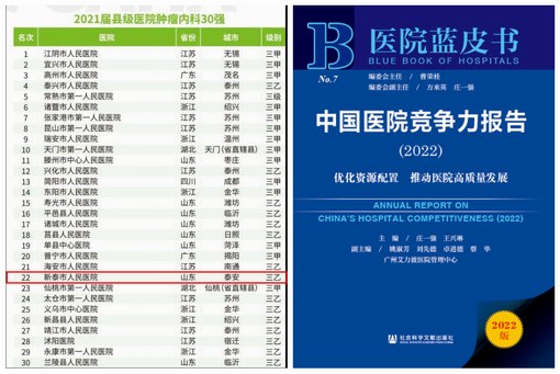 2022年7月10日,被公認為中國最佳第三方醫(yī)院評價標準的艾力彼排行榜(2021屆中國縣級醫(yī)院競爭力春季榜/縣級醫(yī)院專科排行榜)公布于眾,齊魯醫(yī)藥學(xué)院附屬醫(yī)院腫瘤內(nèi)科榮登“全國縣級??婆琶?0強”!