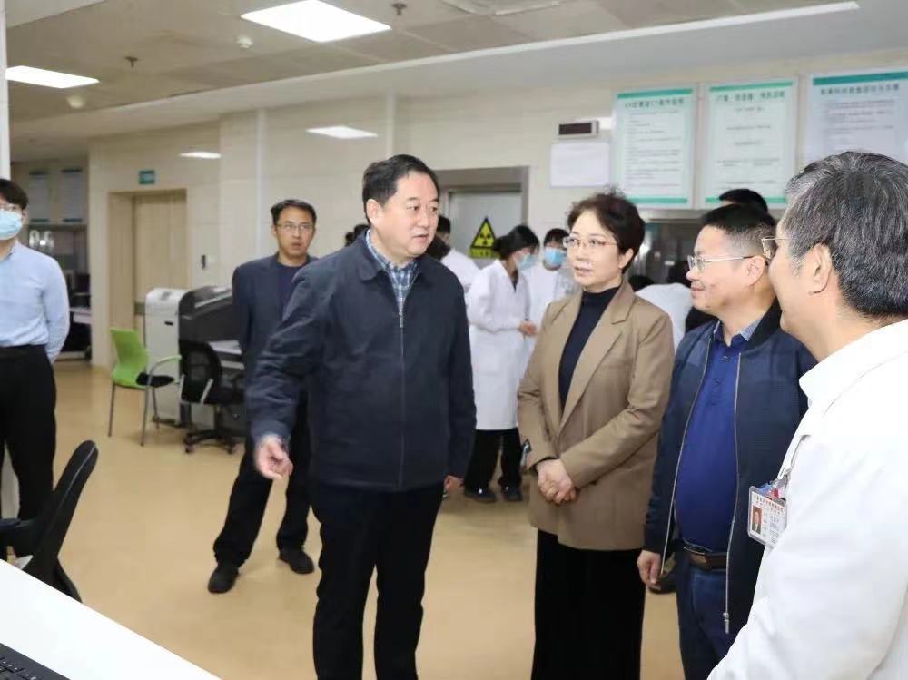 儀式中,張榮彪介紹了我院和本次活動(dòng)情況,王延慶發(fā)表致辭。劉亞民、王延慶、張榮彪共同為3.0T高端磁共振啟動(dòng)。啟動(dòng)儀式結(jié)束后,劉亞民來到醫(yī)學(xué)影像科,查看設(shè)備運(yùn)行情況。